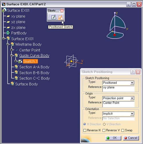 (Sketch ÀÇ H Axis´Â CompassÀÇ X Axis¸¦ ÇâÇÏ´ÂÁö È®ÀÎÇϰí,      Sketch ÀÇ V Axis´Â CompassÀÇ Y Axis¸¦ ÇâÇÏ´ÂÁö È®ÀÎÇÑ´Ù.)