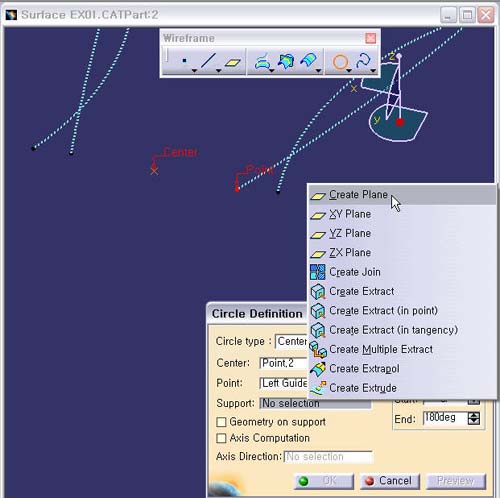 Point : Left Guide Curve ÀÇ ³¡Á¡À» ¼±ÅÃÇÑ´Ù.