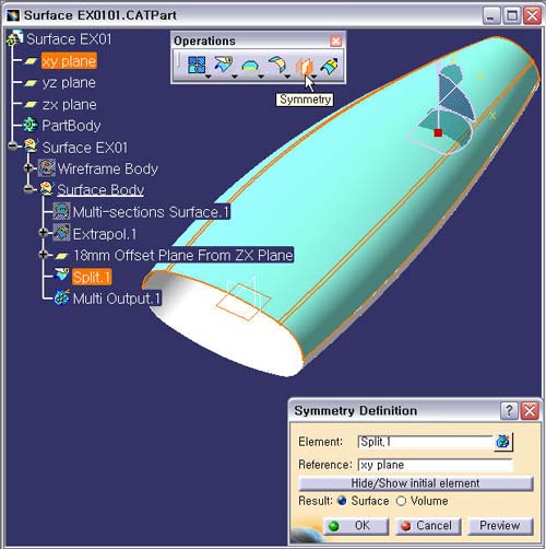 1. Symmetry ÀÛ¾÷Çϱâ Symmetry ¾ÆÀÌÄÜÀ» ¼±ÅÃÇÑ´Ù. Element : Split.1 Reference : xy Plane Preview ¹öưÀ» È®ÀÎ ÈÄ, OK ¹öưÀ» Ŭ¸¯ÇÑ´Ù.