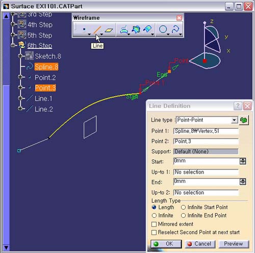 Spline ÀÇ ¾ç ³¡Á¡°ú »ý¼º Points °£¿¡ Á÷¼±À¸·Î ¿¬°á ÀÛ¾÷À» ÇÑ´Ù.