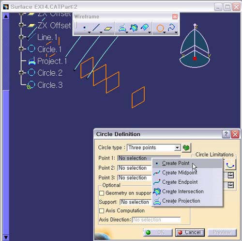 1. Circle ¾ÆÀÌÄÜÀ» ¼±ÅÃÇÑ´Ù. Circle Type : Three Points Point.1 : No Selection¿¡¼ ¸¶¿ì½º ¿À¸¥ÂÊ ¹öưÀÇ Contextual MenuÀÇ Create Point¸¦ ¼±ÅÃÇÑ´Ù.
