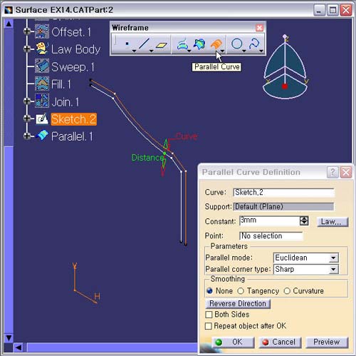 1. Parallel ¾ÆÀÌÄÜÀ» ¼±ÅÃÇÑ´Ù. Curve : Sketch.2 Support : Default (Plane) Constant : 3mm