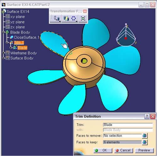 1. Trim Definition â¿¡¼ Faces To Keep : No SelectionÀ» ¸¶¿ì½º·Î ¼±Åà ÈÄ, ´ÙÀ½°ú °°Àº »óºÎÀÇ Blade À¸é 6°³¸¦ ¼±ÅÃÇÑ´Ù