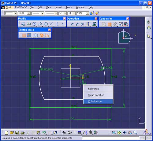 3. ÁÂ¿ì °¢°¢ÀÇ Radius Ä¡¼öÀÇ Center¸¦ H Axis ¿¡ ÀÏÄ¡ (Coincidence) ±¸¼ÓÀ» ÁØ´Ù.