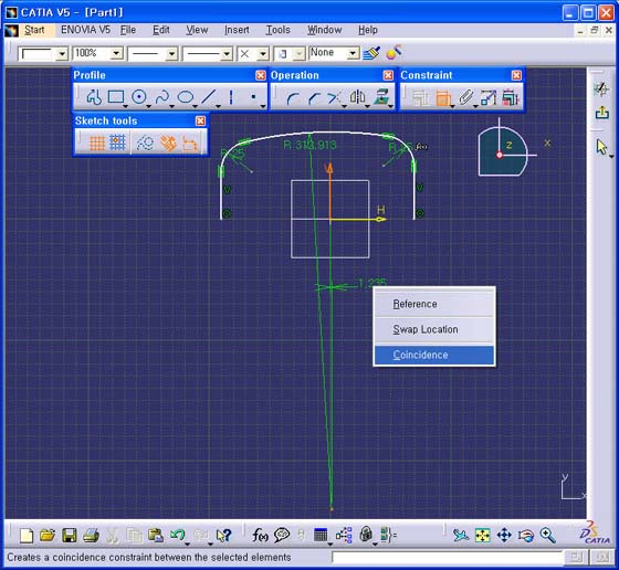 3. Radius Ä¡¼öÀÇ Center¸¦ V Axis ¿¡ ÀÏÄ¡ (Coincidence) ±¸¼Ó À» ÁØ´Ù.