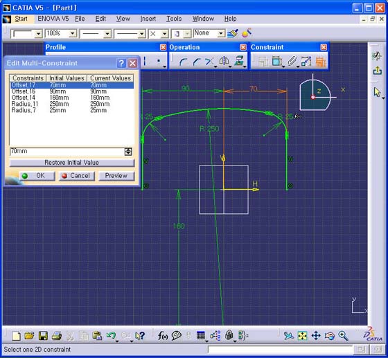 1. Constraint Tools Tool BarÀÇ Edit Multi-Constraint ¾ÆÀÌÄÜÀ» ¼±ÅÃÇÑ´Ù.