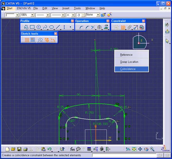 3. Radius Ä¡¼öÀÇ Center¸¦ V Axis ¿¡ ÀÏÄ¡ (Coincidence) ±¸¼Ó À» ÁØ´Ù.