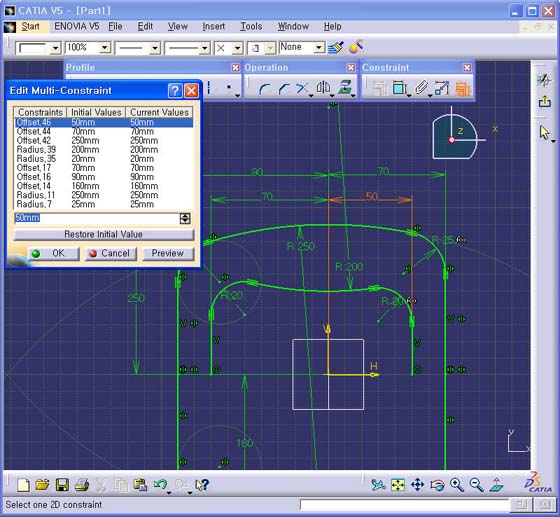 1. Constraint Tools Tool BarÀÇ Edit Multi-Constraint ¾ÆÀÌÄÜÀ» ¼±ÅÃÇÑ´Ù.