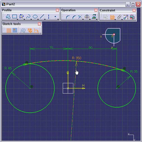 3. »ý¼º Arc¸¦ ¼±ÅÃÈÄ, R350ÀÇ Ä¡¼ö¸¦ ÀÔ·ÂÇÑ´Ù.