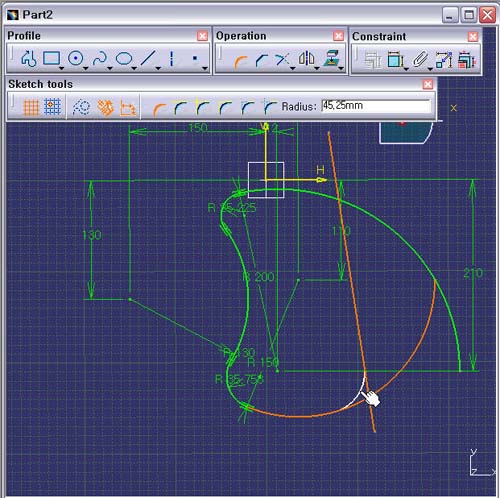 2. ´ÙÀ½°ú °°ÀÌ R150 ÀÎ ¿ø°ú Á÷¼±À» ¼±ÅÃÇÑ´Ù.