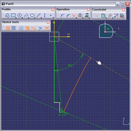 2. Sketch Tools Tool Bar¿¡¼´Â Trim First Element°¡ ¼±ÅõǾî ÀÖ´ÂÁö È®ÀÎÇÑ´Ù.