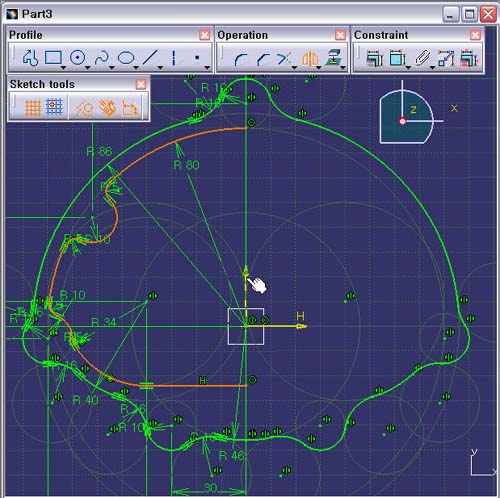 Operation Tools Tool BarÀÇ Mirror ¾ÆÀÌÄÜÀ» ¼±ÅÃÇÑ´Ù.